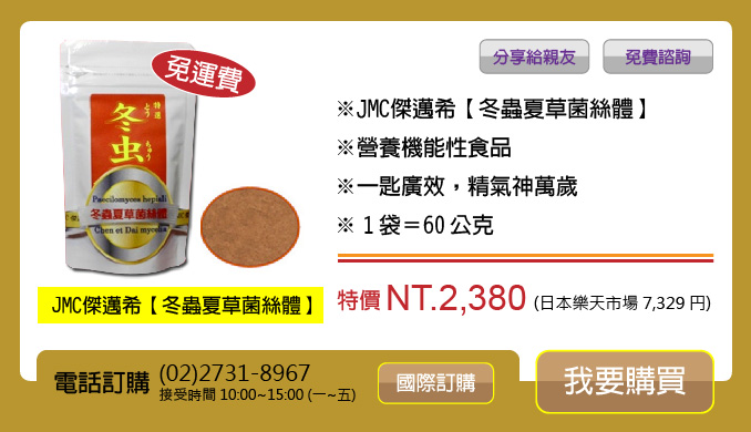 日本 JMC 傑邁希【冬蟲夏草菌絲體】